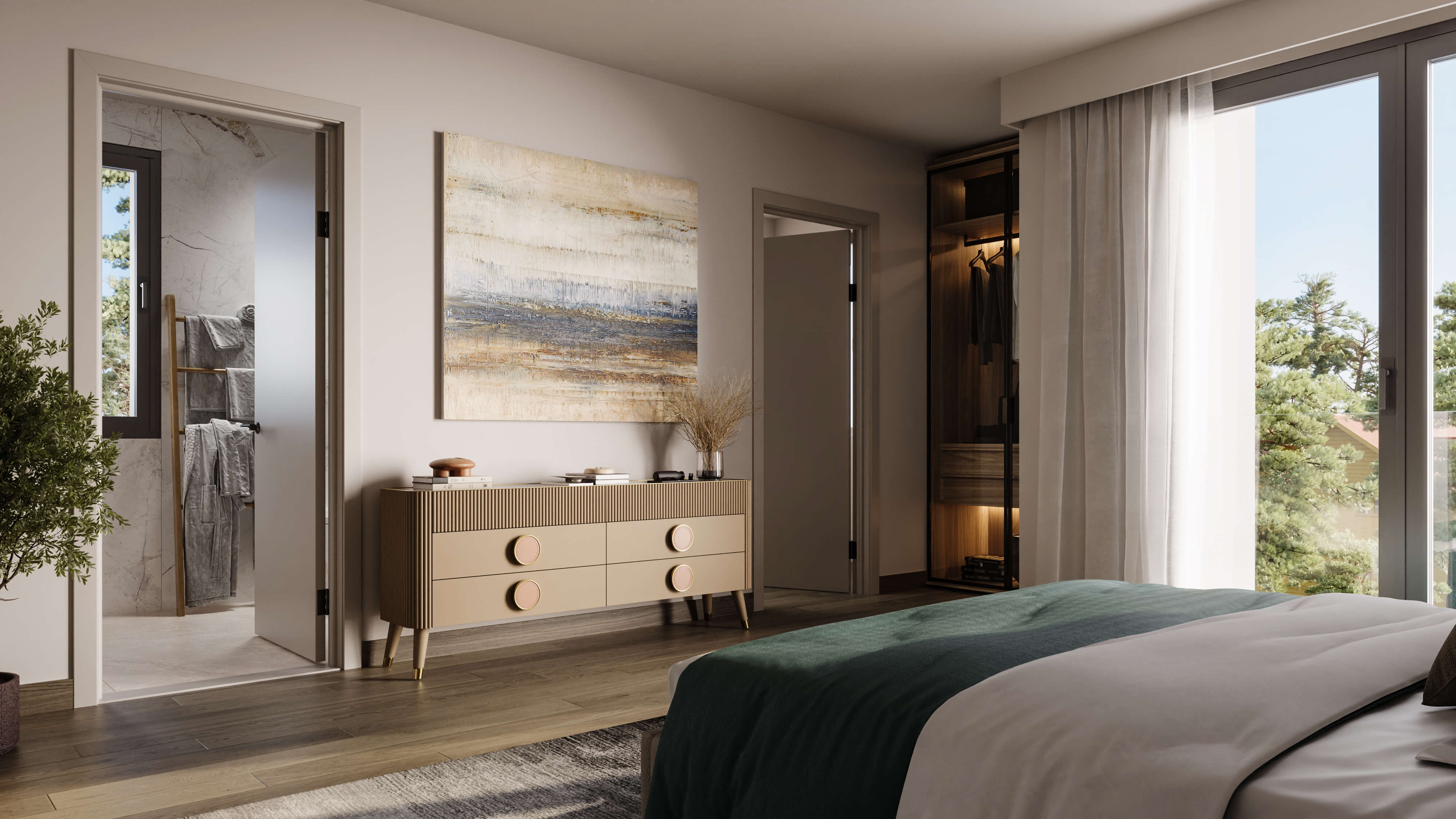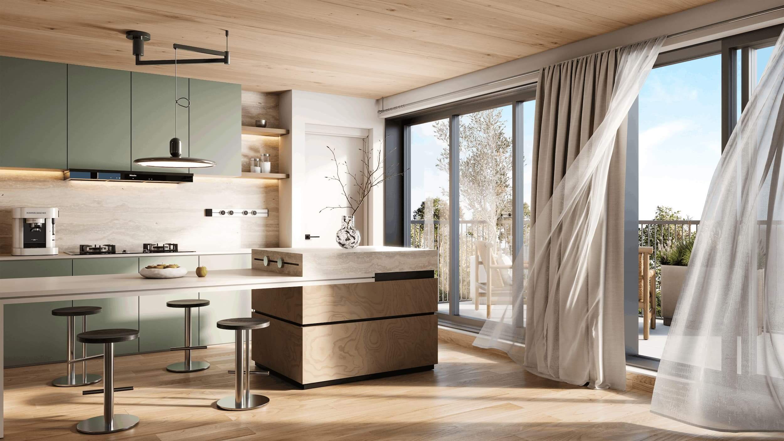 Chaque appartement a été pensé pour offrir des volumes lumineux et chaleureux, grâce à de larges ouvertures favorisant la lumière naturelle. Tous les logements bénéficient d’un espace extérieur privatif :